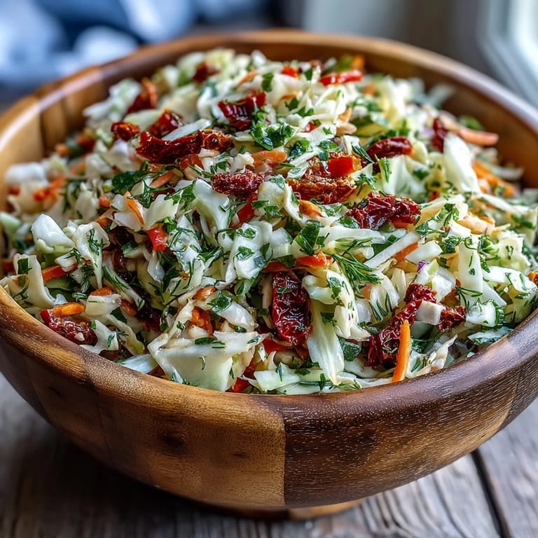 Pin to board The summer I discovered this salad was the same summer my tiny apartment kitchen became my sanctuary. I had bought way too much cabbage from a farm stand, and honestly, I was staring at these beautiful purple and green heads wondering what on earth I'd gotten myself into. Something about the combination of red and green cabbage looked so vibrant that I couldn't bear to cook them down into something soft and wilted. That's when I remembered a jar of sun-dried tomatoes sitting in my pantry, gathering dust since that brief phase where I thought I'd become an Italian grandmother overnight.