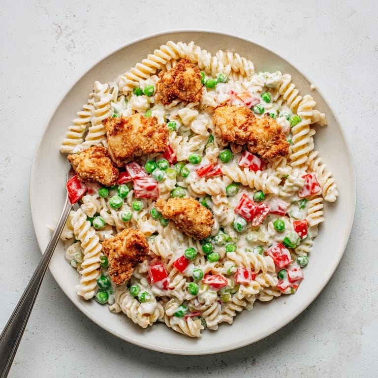 Pin to board The first time I brought this pasta salad to a neighborhood potluck, my friend Sarah literally hunted me down three days later for the recipe. She said her husband kept talking about the crispy chicken pieces and how they stayed crunchy even in the creamy dressing. I felt like I'd unlocked some secret kitchen magic that weekend.