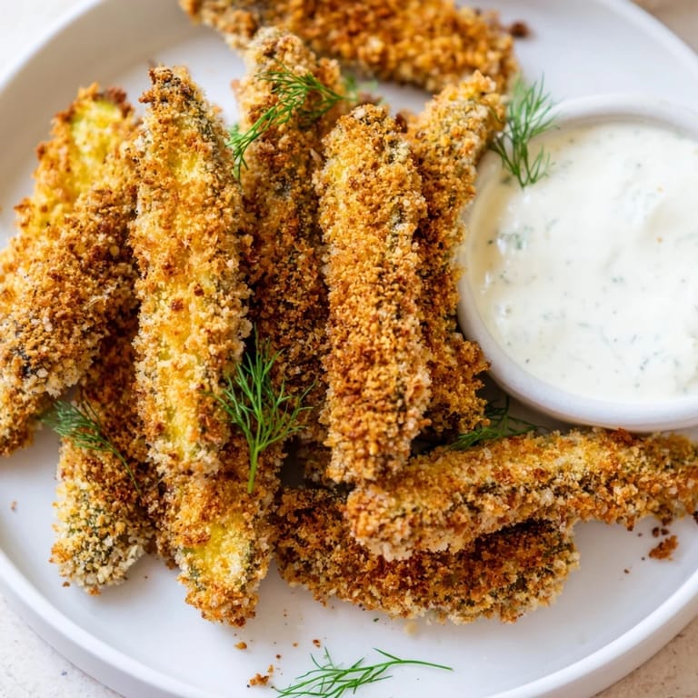 I started making these at home after my roommate kept requesting them for every gathering. There is something uniquely satisfying about watching people who claim they hate pickles suddenly hovering around the serving bowl, pretending they are just being polite. The recipe has evolved through messy trial but this version with the three station breading process never fails me.