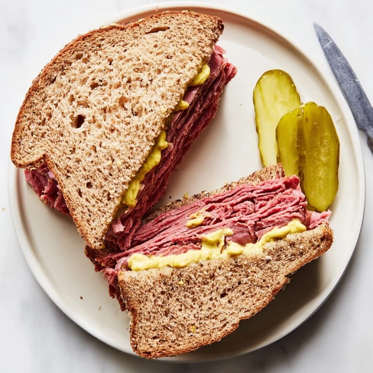 Pin to board Standing on a corner in Midtown Manhattan with a paper wrapped sandwich in hand changed how I thought about lunch forever. The steam escaped through the wax paper as I took that first bite, tangy mustard meeting peppery pastrami in what felt like a perfectly orchestrated collision of flavors. I spent years trying to recreate that moment at home, learning that the bread matters just as much as the meat.