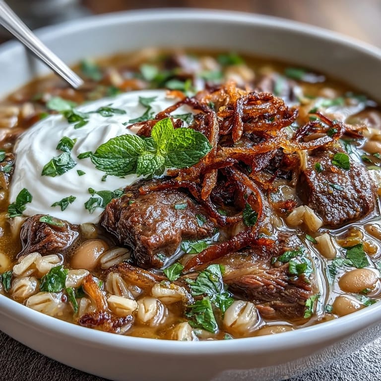 Pin to board My neighbor Farida invited me over one cold February evening, and the moment I stepped into her kitchen, this soup was already simmering—the aroma of turmeric and fresh herbs so thick it seemed to wrap around me like a shawl. She caught me inhaling deeply and laughed, explaining that her grandmother made this same pot every winter in Tehran, and now it's become her quiet ritual whenever snow threatens outside. That night, watching her swirl sour cream into each bowl with practiced precision, I realized this wasn't just a recipe—it was a conversation between generations, told through barley and mint.