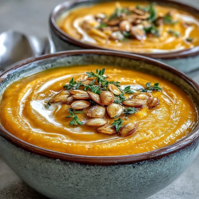 This soup is naturally vegetarian and gluten-free, which makes it feel special without requiring special attention. The beauty is in its simplicity, but the finishing touches—a swirl of cream, a scatter of toasted pumpkin seeds, a few thyme leaves—turn a simple bowl into something people want to photograph and share. A slice of crusty bread on the side or a grilled cheese sandwich for dunking transforms this from a light starter into a complete, satisfying meal.