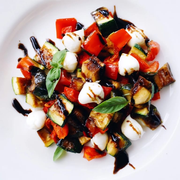 Pin to board The oven door clicked shut, and I watched the diced vegetables glisten under the kitchen light. My neighbor had dropped off a bag of bell peppers from her garden, and I wanted something brighter than my usual roasted veggie routine. I grabbed mozzarella pearls from the fridge, remembering a Caprese I'd had at a sidewalk cafe years ago, and thought: why not marry the two? That evening, the caramelized edges and creamy cheese made something I didn't expect, a salad that felt like summer even though it was October.