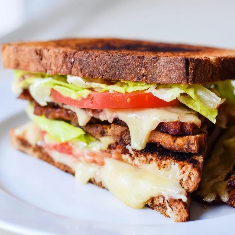Pin to board My neighbor knocked on my door one rainy Tuesday holding a block of tempeh and asking if I knew what to do with it. I laughed and told her to give me twenty minutes. What came out of my skillet that afternoon was smoky, crispy, and so convincing that she texted three friends about it before she even left my kitchen. That tempeh bacon became the star of this grilled cheese, and now it's the sandwich I crave when I want something comforting but still feel good about eating.